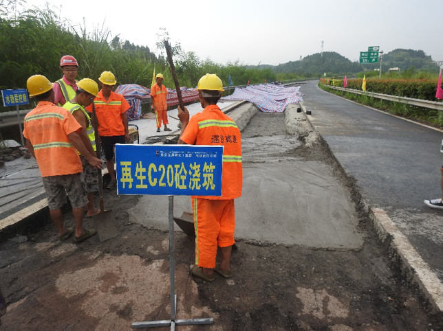 去年5月,研究院相关团队在遂资高速公路两江新区段开展了为期近2个月的再生材料试点工作。通过对挖补养护现场施工产生的建筑垃圾进行调研与可行性分析,并根据应用情况,研发合理的再生工艺配比,制造再生水泥,实现了现场挖补废料的循环再生利用。