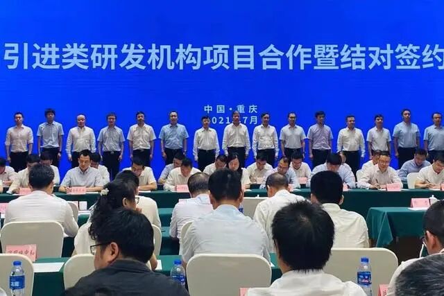 参与战略签约、“结对子”的高校科研院所分别是:北京理工大学重庆创新中心、哈尔滨工业大学重庆研究院、同济大学重庆研究院、华东师范大学重庆研究院、上交大重庆临近空间创新发展中心、长春理工大学重庆研究院、西北工业大学重庆科创中心、北京工业大学重庆研究院、新加坡国立大学重庆研究院、中科院广州化学西部研究院、湖南大学重庆研究院、重庆中国药科大学创新研究院、重庆智能机器人研究院、中科计算技术西部研究院、武汉理工大学重庆研究院、重庆诺奖二维材料研究院有限公司、上海交通大学重庆研究院、重庆鲁汶智慧城市与可持续发展研究院、吉林大学重庆研究院。